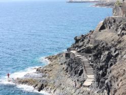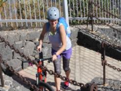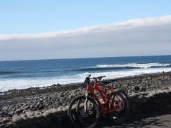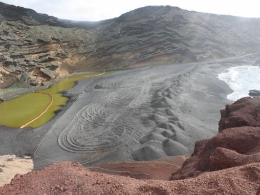 Mit dem Moutainbike ging es fast 30 Kilometer nach Westen zu dem kleinen Fischerdorf EL GOLFO. Erst einen Vulkan hoch, dann durch die Asche wieder runter (20% Gefälle!!!), dann durch ein Weinanbaugebiet, mehrere Städte und durch das große Lavafeld am Rande von Timanfaya. WOW, war das ein toller Moment, als endlich das Meer vor uns auftauchte!