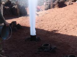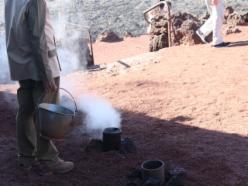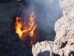 mit heißer Lava, wie uns mit einem Strauch und Wasser demonstriert wurde - Klasse!