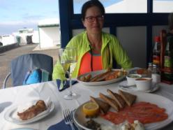 Zur Belohnung gab's leckeren Fisch und ein Gläschen Wein.