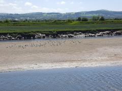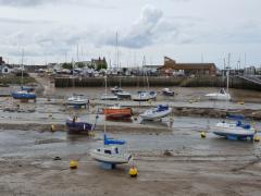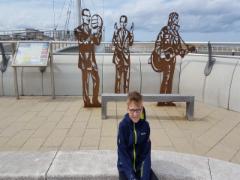 Wieder zurück in Rhyl, schauten wir uns den kleinen Hafen bei Ebbe an. Dieser liegt direkt an der "Dragon Bridge". Diese hat ihren Namen einerseits von dem roten Drachen der Nationalflagge, sowie andererseits von den Brückenteilen, die sich beim Öffnen wie Flügel in den Himmel erstrecken.
