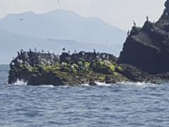 Neben zahlreichen Vögeln wie Komoranen sahen wir auch Seelöwen und Papageientaucher ("Puffins").