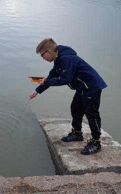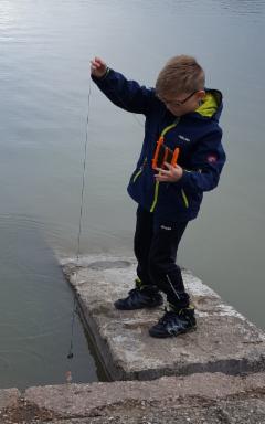 jede Menge der kleinen Tierchen aus dem Wasser fischte. An dem als Köder verwendeten
