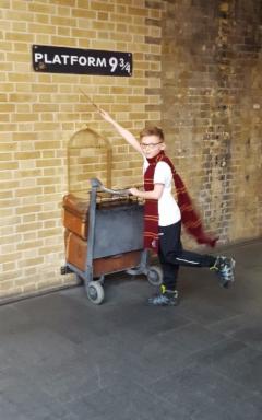 Nach drei Stunden kamen wir am Bahnhof in St. Pancras an. Und hier stellte sich Luis doch glatt und ganz freiwillig in eine Reihe und wartete eine unglaubliche Stunde lang, bis man von ihm ein Foto an der berühmten Tafel von "Harry Potter" konnte!