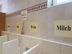 Nach der lautstarken Zusammenkunft aller lustigen Bierwanderer mussten wir uns erst mal zünftig stärken. Zu unserer Verwunderung wurden hier auch schon auf dem WC die Flüssigkeiten streng getrennt ;-)