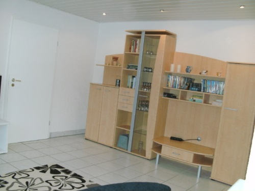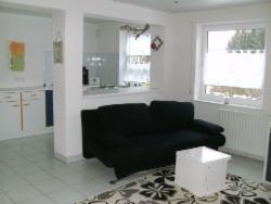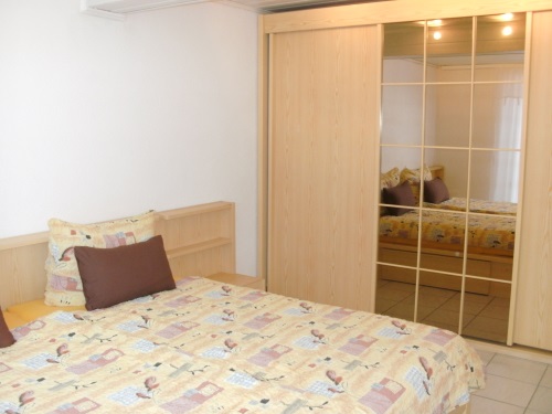 Doppelbett, bei Bedarf kann eine zusätzliche Schlafgelegenheit genutzt werden ( Schlafsofa im Wohnzimmer )