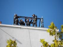 Während ich auf dem Dach die letzten Instruktionen bekomme, vertreiben