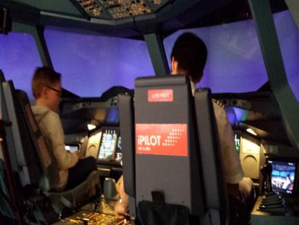Luis hat seinen ersten Flug im Flugsimulator und das gleich im A380!